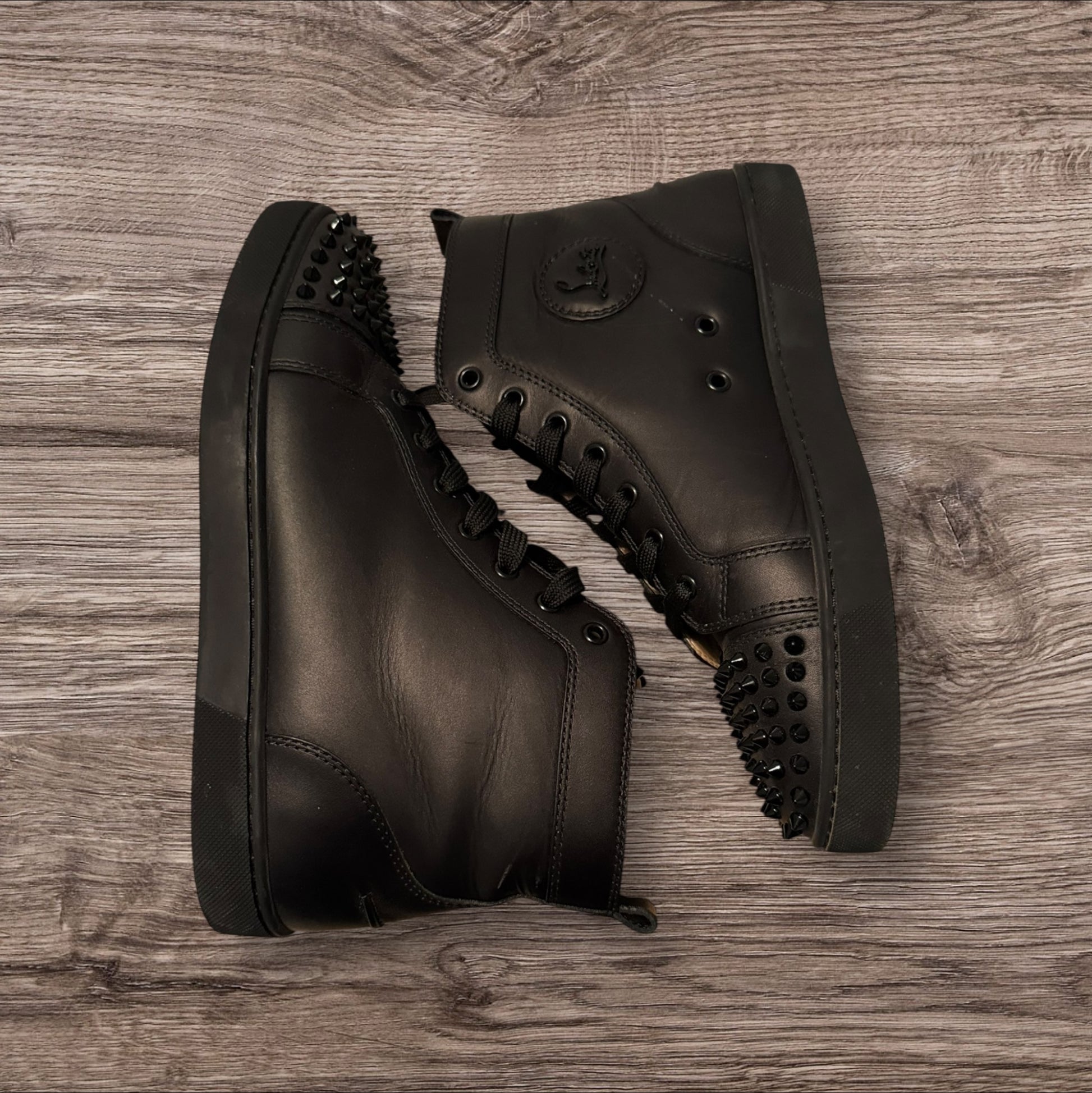 Christian Louboutin Lou Spikes Flats in calf leather combine bold design with refined craftsmanship. Featuring signature spike embellishments, these size 43 shoes offer a striking yet sophisticated look. The premium leather ensures durability and comfort, making them ideal for those seeking edgy elegance in their footwear collection. Perfect for elevating both casual and formal outfits with a distinctive flair.