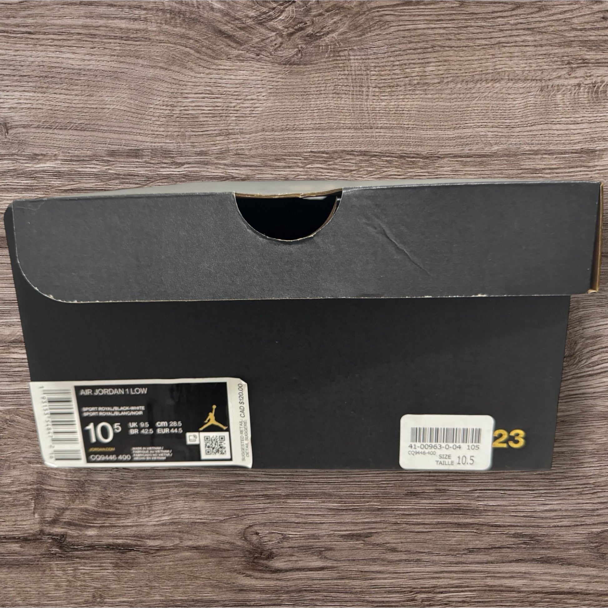 The Jordan 1 Low Royal Toe (CQ9446 400) in size 10.5 delivers technical excellence through its premium leather construction and iconic color blocking. This sophisticated interpretation features a Game Royal toe box and heel counter balanced against black quarter panels and Swoosh, creating the distinctive "Royal Toe" aesthetic on the low-top silhouette. The cupsole construction provides superior durability while the Air-cushioned midsole offers responsive comfort. Wing logo detailing on the heel and Jumpman branding on the tongue maintain heritage design elements while adapting the legendary high-top colorway to the versatile low-profile execution preferred by performance-focused collectors.