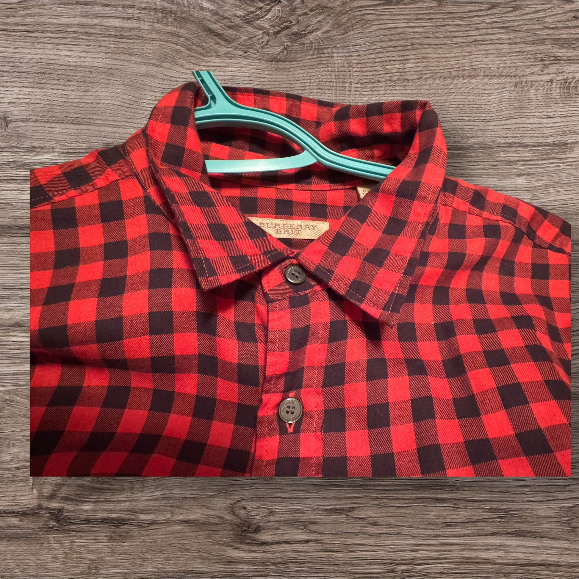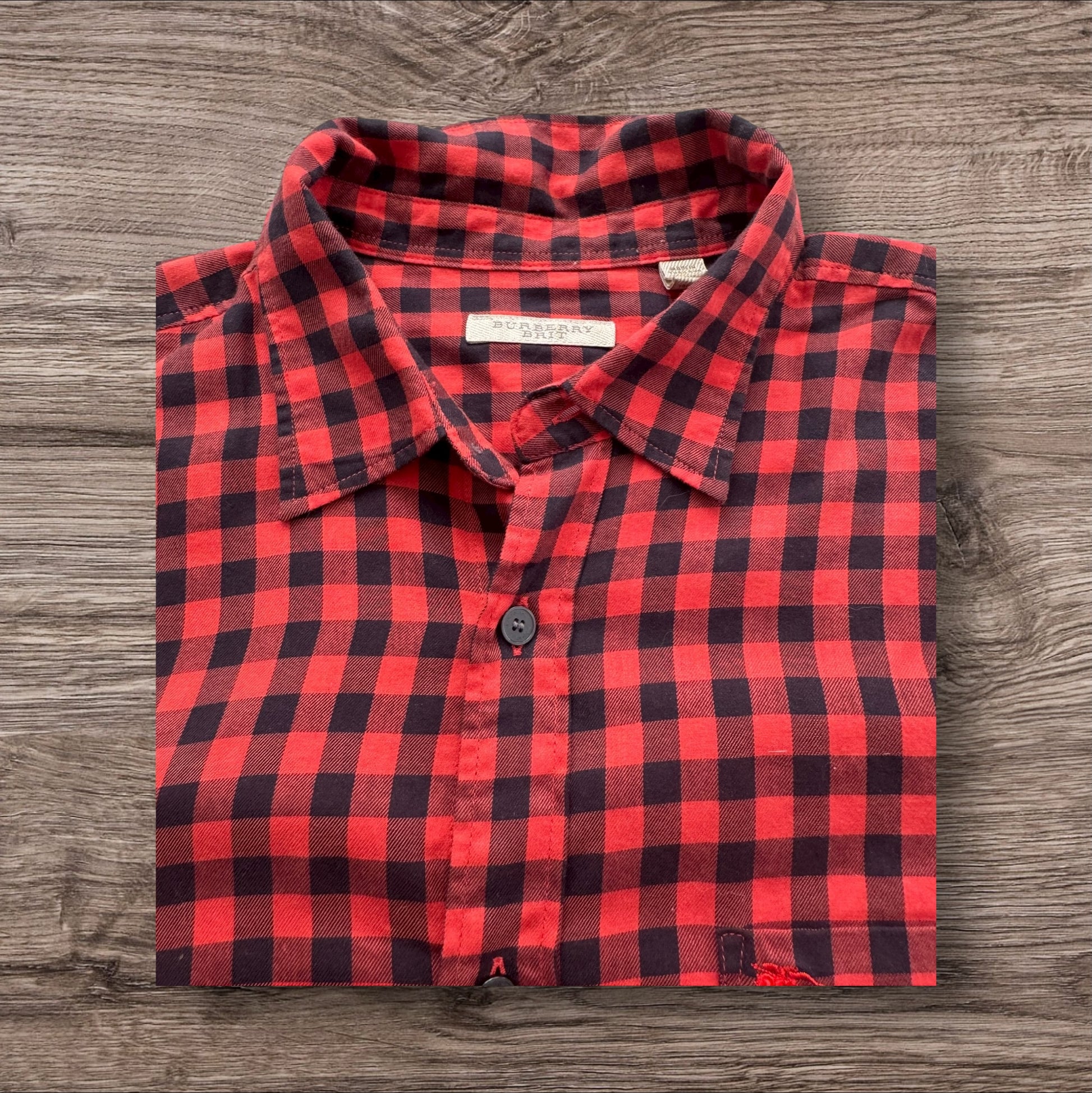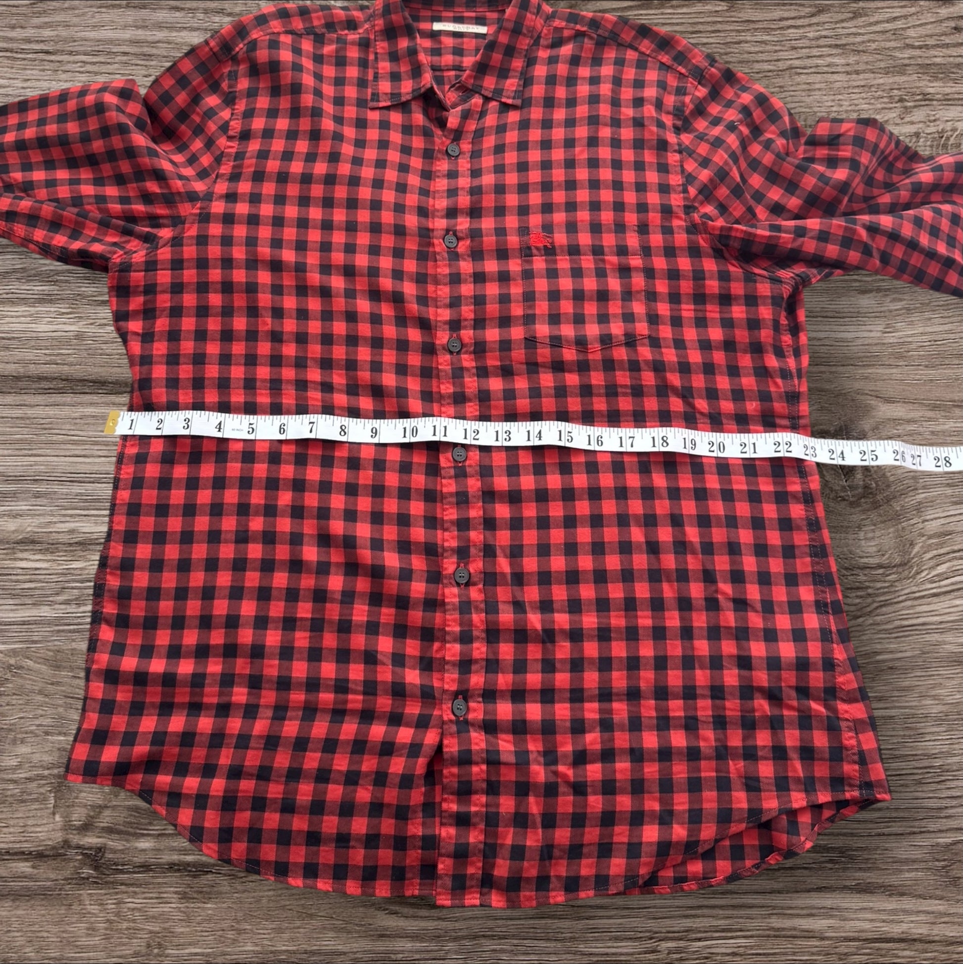 Red Burberry Button Up Shirt