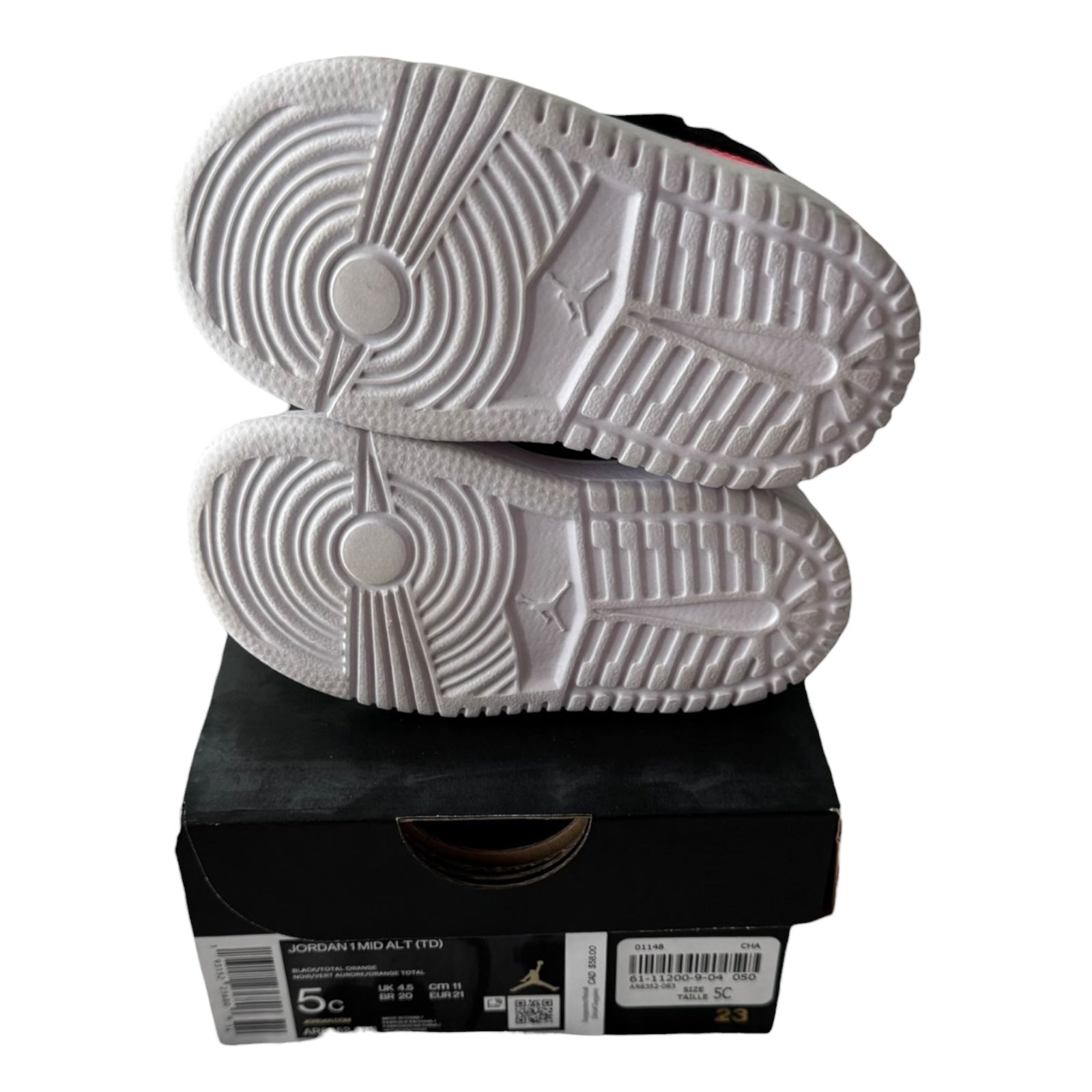 The TD Jordan 1 Mid Alt in Black and Total Orange offers a stylish and durable option for infants. Featuring premium materials and the iconic Jordan design, these size 5C sneakers provide both comfort and support for growing feet. The bold black and orange colorway adds a vibrant touch, making them perfect for young sneaker enthusiasts. Ideal for everyday wear, these shoes combine heritage style with practical functionality.